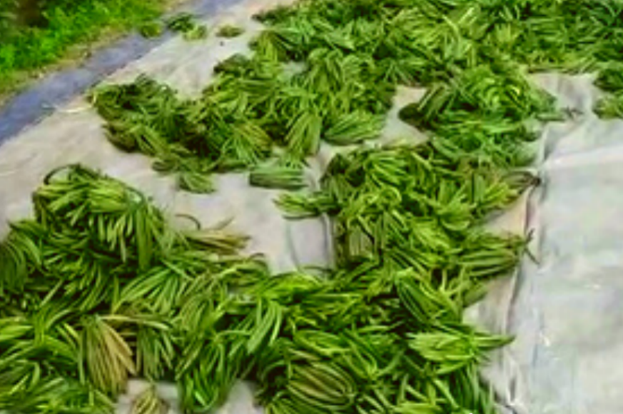グリーンバニラの収穫後、熟したバニラビーンズが混ざっていると、 腐敗してしまう可能性があるため丁寧に選別して、熟した部分を捨てます。 その後、バニラを洗浄します。 なんと1kgのバニラを作るのに6kgのバニラが必要です。